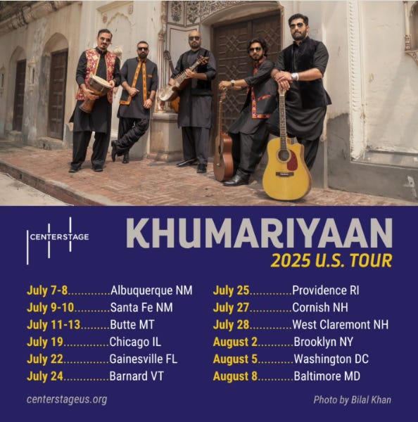 Pakistani folk group, Khumariyaan, is slated to kick off a 12-stop US tour with a concert right here in Albuquerque. After a welcome party in Nob Hill followed by a show at the Fusion Theater, they’ll be heading to cities like Washington, D.C., Baltimore, Chicago and New York City.