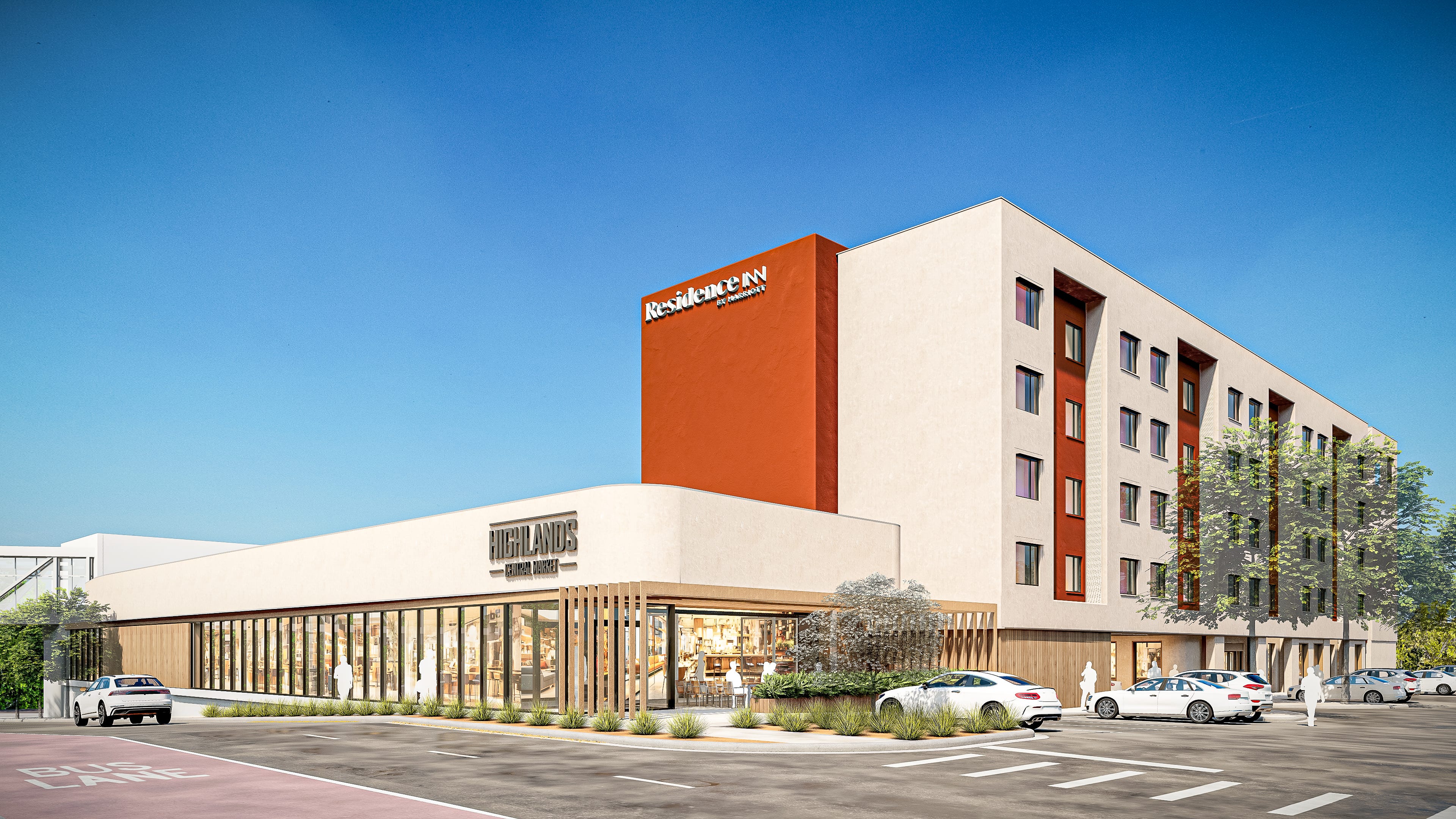 The food hall and Residence Inn are part of a larger development near Presbyterian called The Highlands. It includes the already completed Springhill Suites, which is connected by the sky bridge to the hospital and the adjacent 92-unit Olympus Highlands North multifamily development.
