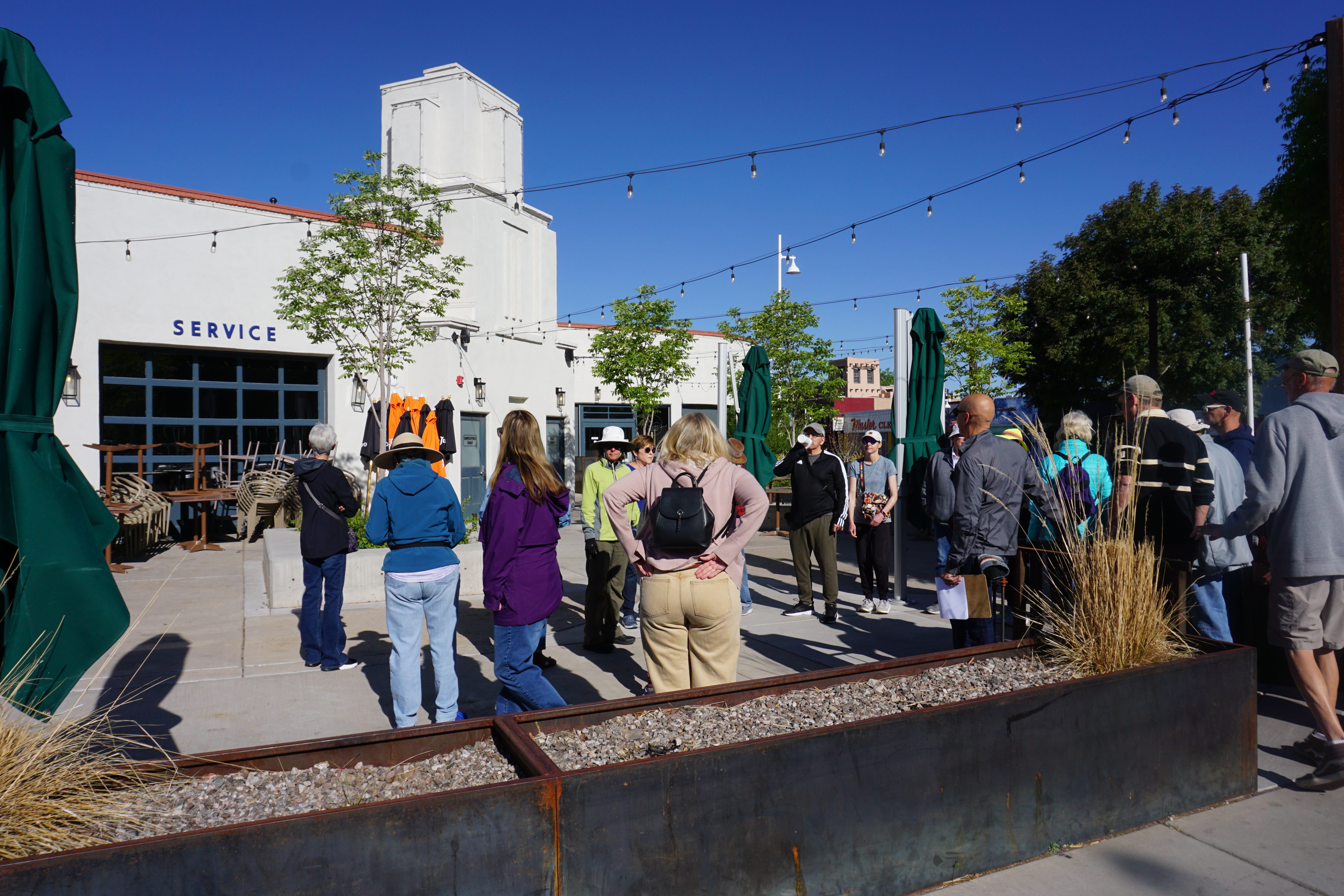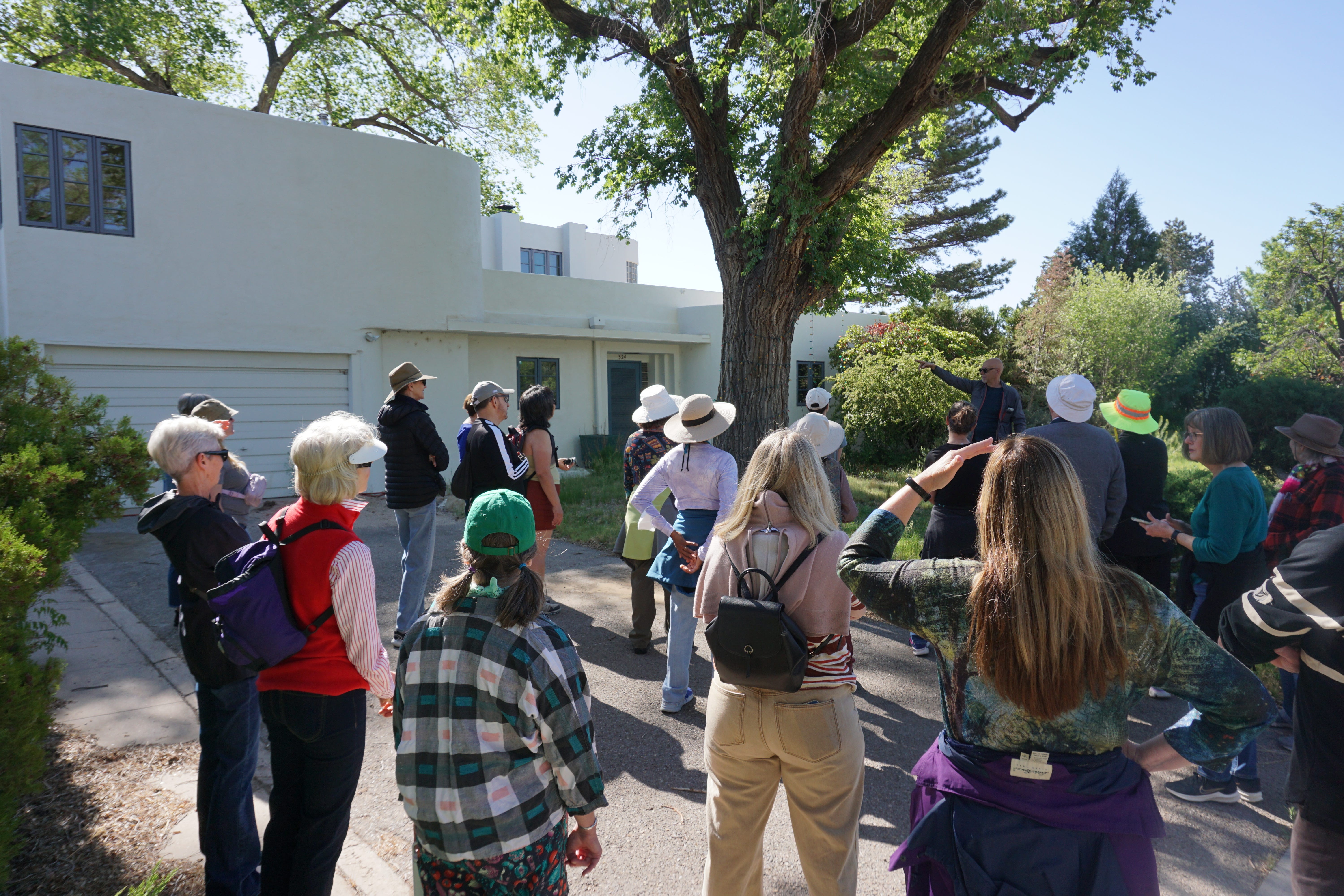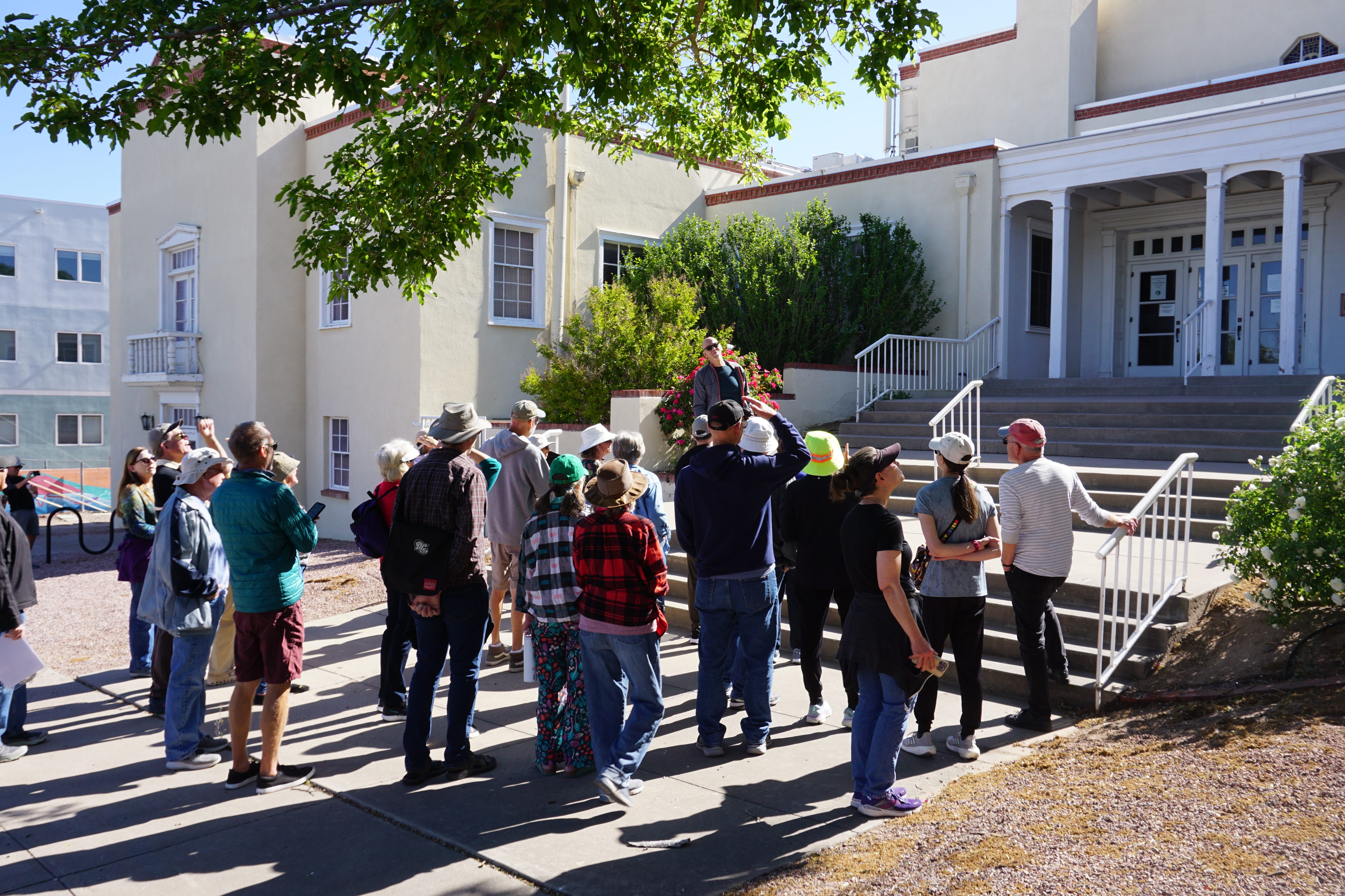 Nob Hill resident Steven Justrich developed the Nob Hill walk. He’s a Jane’s Walk organizer and professional interior designer who is also interested in architecture. Justrich taught walkers a little bit about the different architectural styles in the Nob Hill area, including Pueblo Revival, Territorial, Streamline Moderne, Art Moderne, International and more.