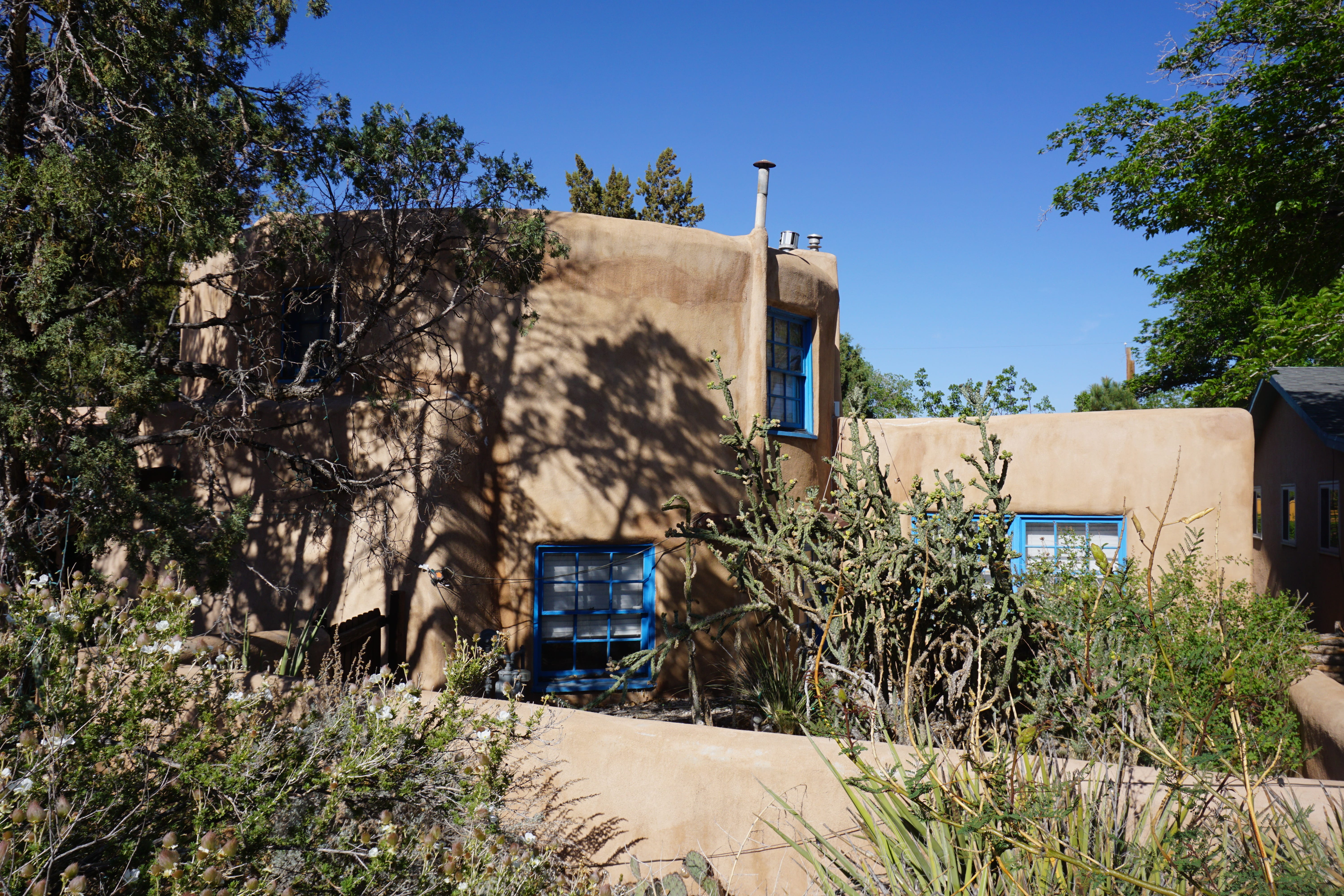 The Tank House, located at 319 Carlisle Blvd. NE, is a 1937 Pueblo Revival-style home that was the site of Albuquerque’s first water tower. The private water system was built at the highest point in Nob Hill and eventually replaced by the city’s water system.