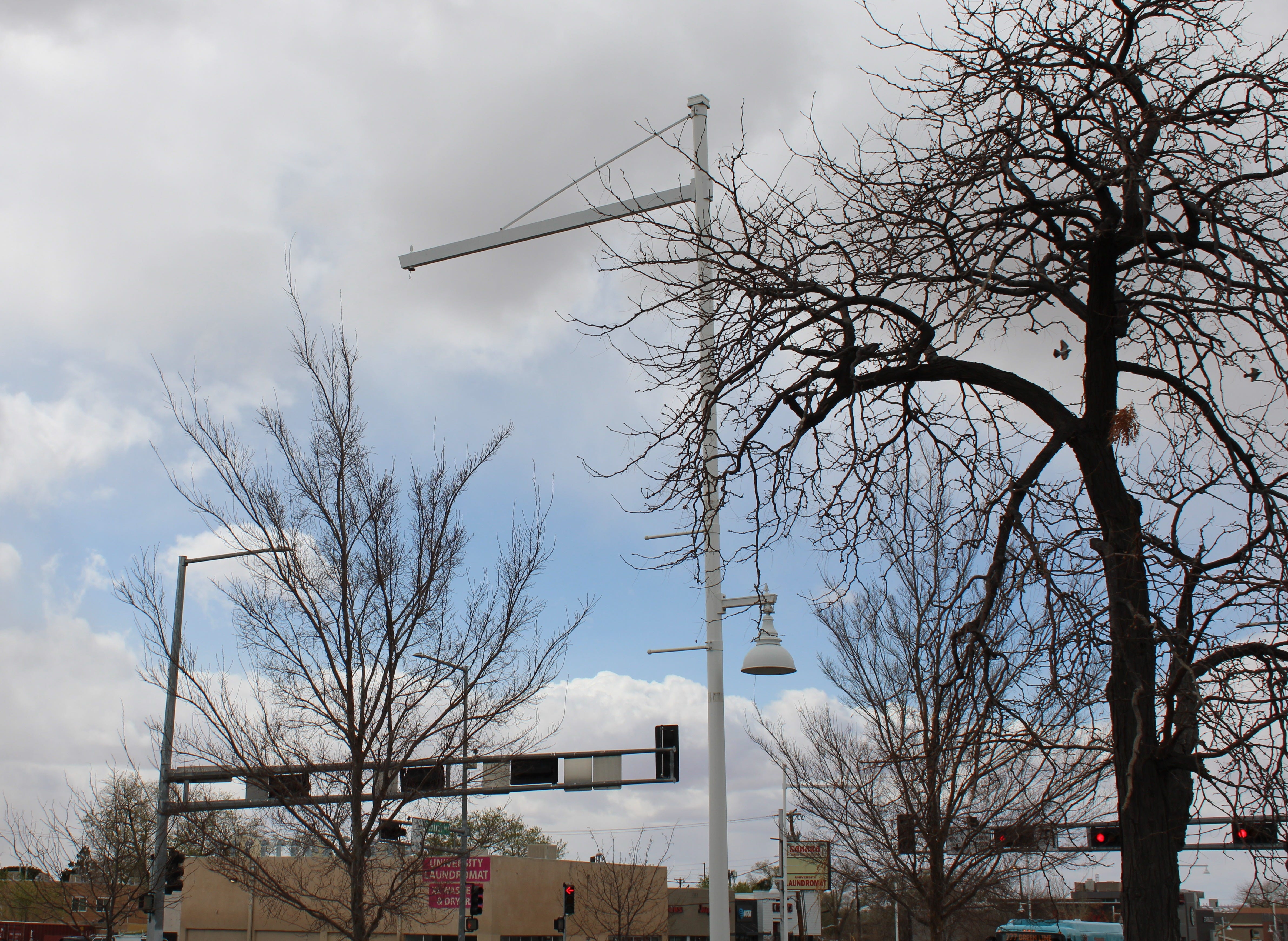The 25-pound fixtures have been blown down in high winds over the years. The city is in a legal battle with the manufacturer, Environmental Lighting for Architecture Inc. The city claims they designed a faulty light. The manufacturer is claiming the city made modifications to their product. The suit is set to go to trial next year.