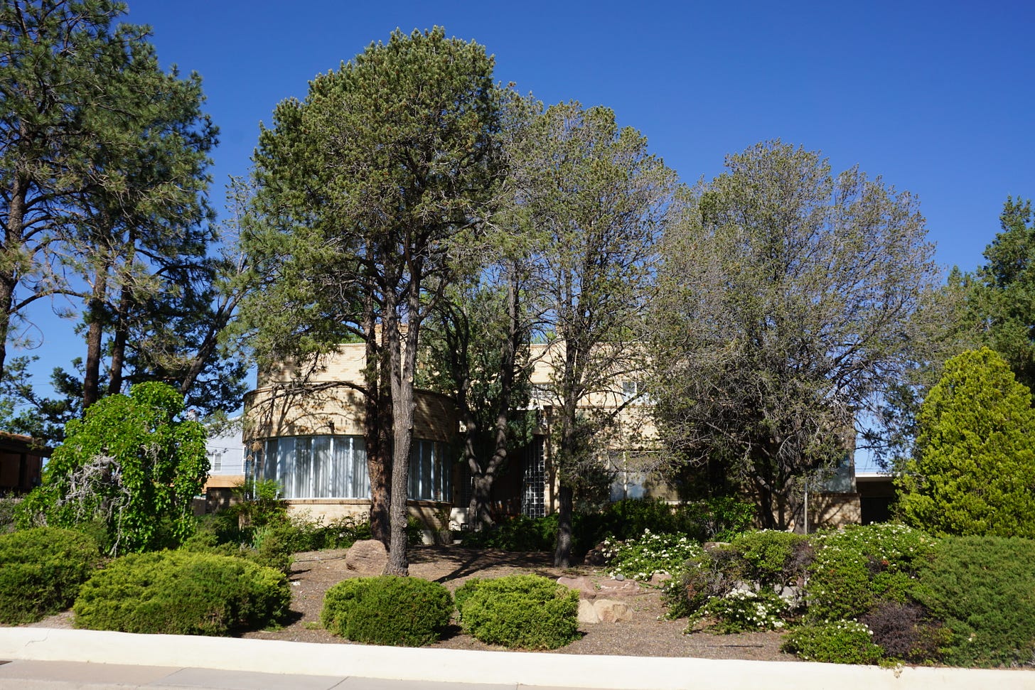 The home at 324 Hermosa Drive SE is thought to be the first house in Albuquerque to have air conditioning. Known as the Kelvinator House, it was built in 1938 by Walter C. Raabe, the owner of Raabe & Mauger Hardware Co., to showcase Kelvinator appliances the company distributed. It was considered ultra-modern and the “home of tomorrow.” Its International style architecture stands out among the Pueblo-style houses in the area.
