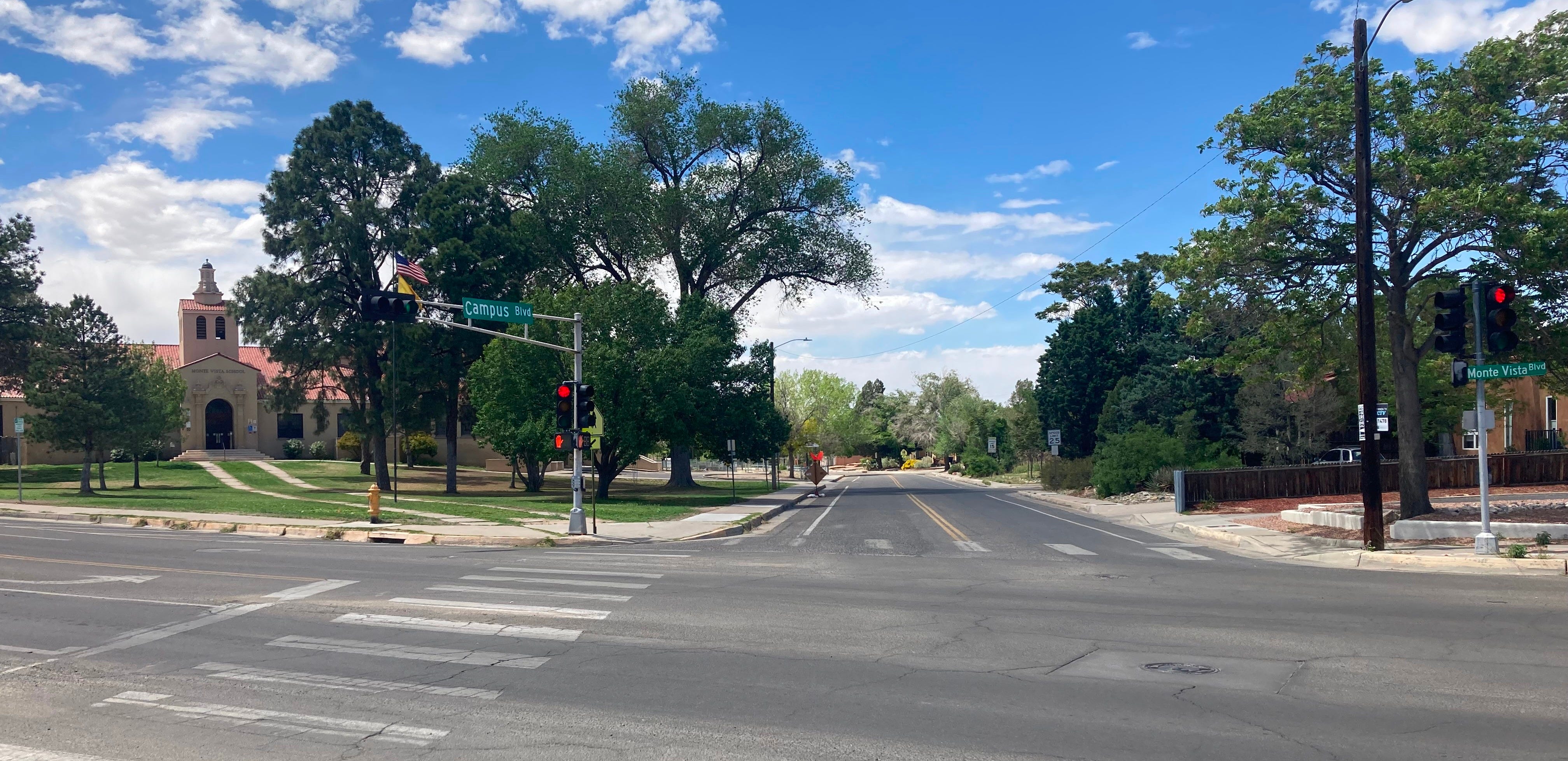 The intersection of Monte Vista and Campus Boulevards once again has a functioning traffic signal after operating as a four-way stop for about six weeks. Damage to the utility aggravated by an old wiring configuration caused the extended delay in repairs, city traffic engineer Tim Brown said at a May 12 meeting of the Greater Albuquerque Active Transportation Committee.